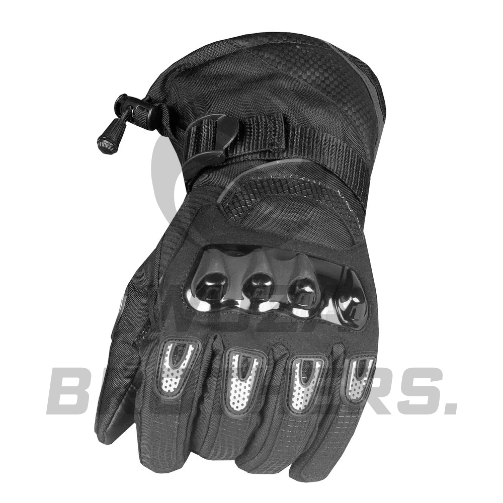 "Made of high quality strong water proof Cordura to protect your hands from abrasion and scratching. Thinsulate warm lining. Reflective piping for high visibility. Reinforced anti-skid palm with palm slider. Hard shell PVC knuckle protection and rubber tips for finger protection. Cinching straps around wrist for custom fit. Drawstring gauntlet closures. Pre-curved fingers for a natural and comfortable fit. "